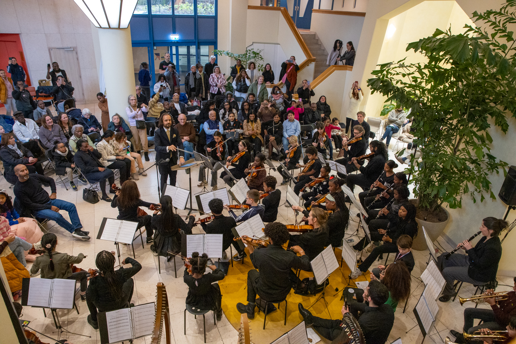 Avi Kishna, sociaal werker bij het Leerorkest, sprak over de impact van muziek en het belang van de Boy Edgar Jongerenprijs. Daarna vertelde Gerrit Reijnen van Stadsdorp Goud over het leven en de nalatenschap van Boy Edgar. Graziella Hunsel Rivero van Zuidoost Jazz deelde haar passie voor muziek en hoe het Leerorkest kansen biedt aan kinderen, terwijl ze op een inspirerende manier het publiek erbij betrok. Tot slot sprak Tanja Jadnansingh van de gemeente Amsterdam krachtige woorden: “Muziek kent geen grenzen; het is de taal die iedereen begrijpt en voelt.”