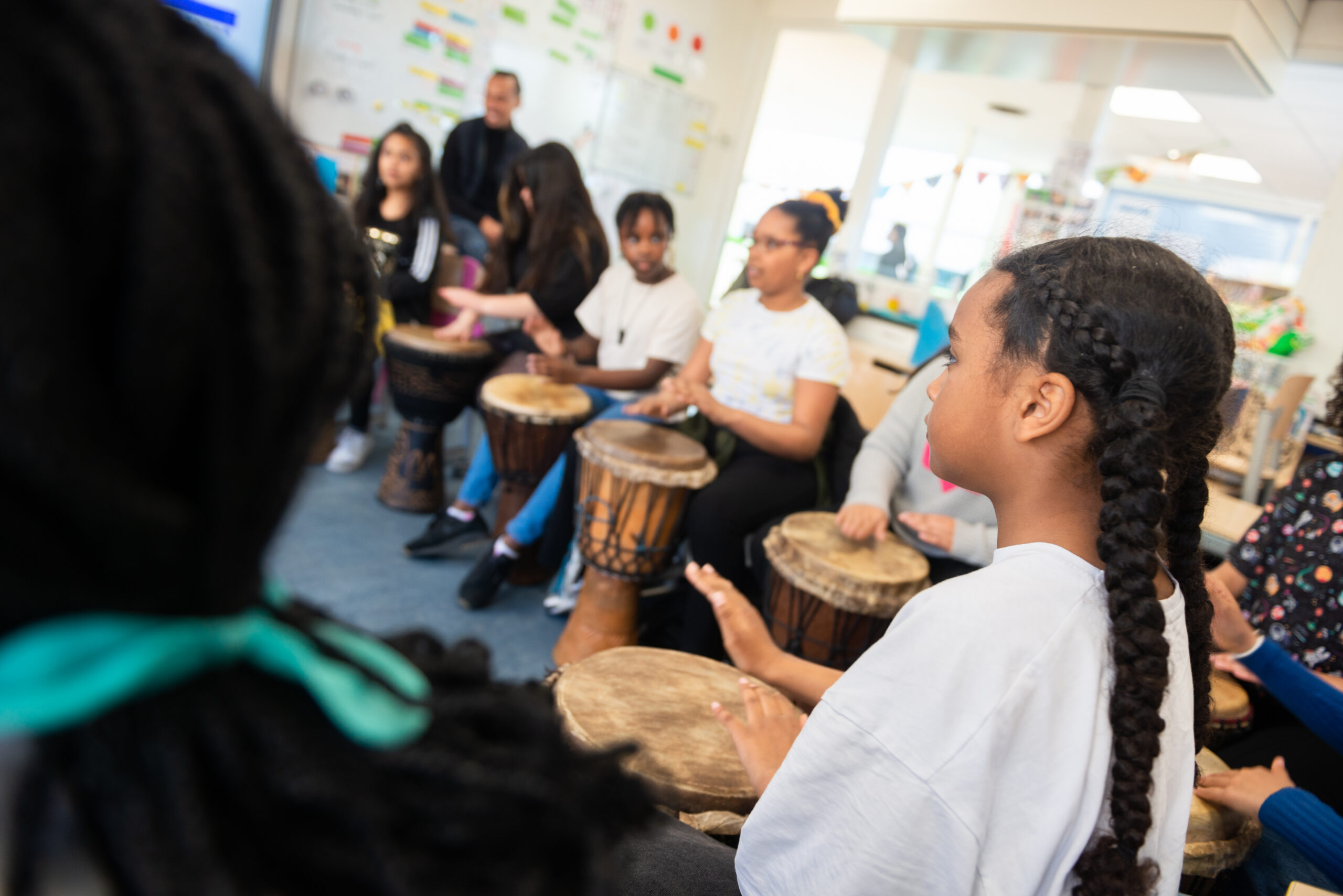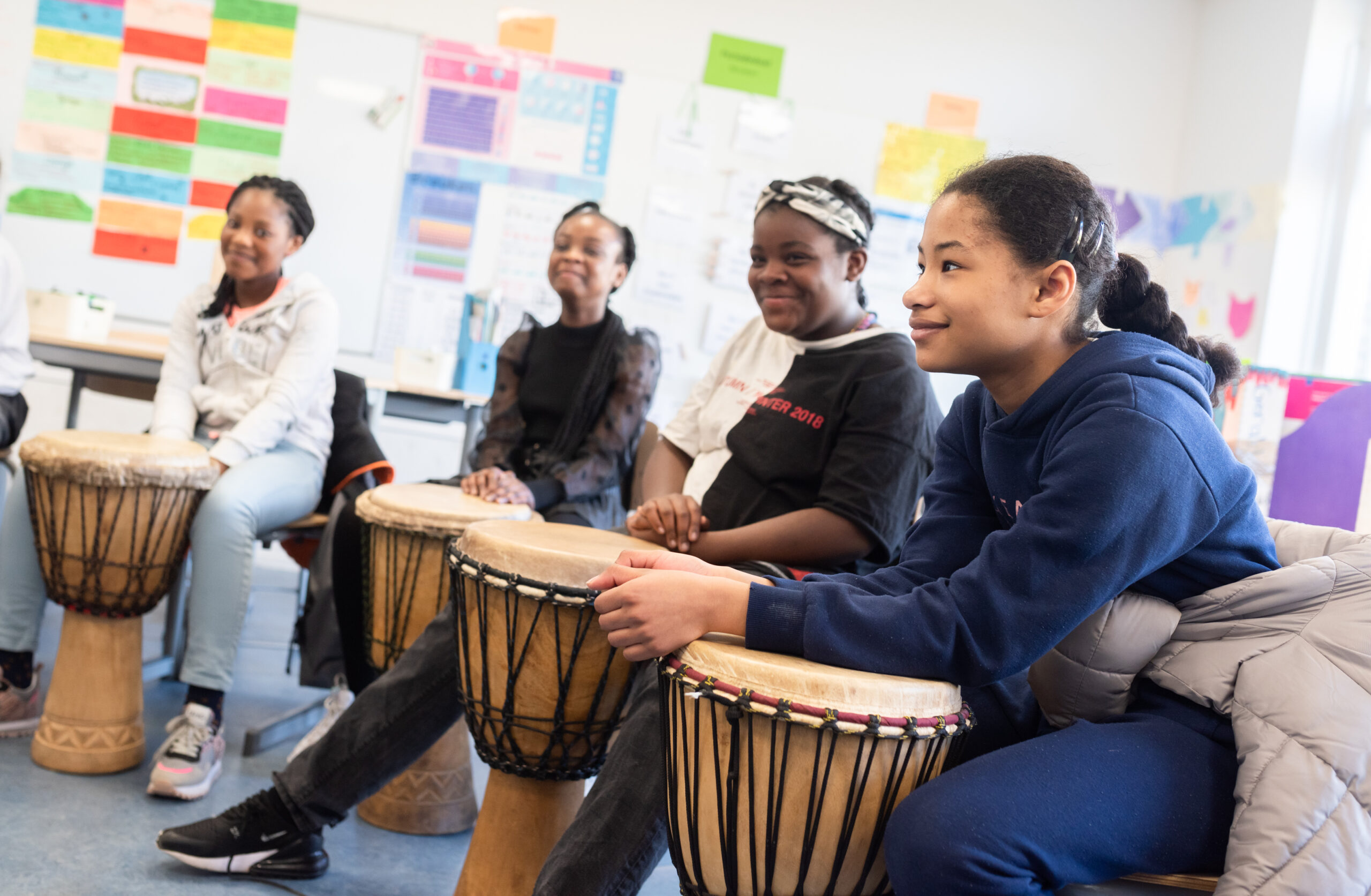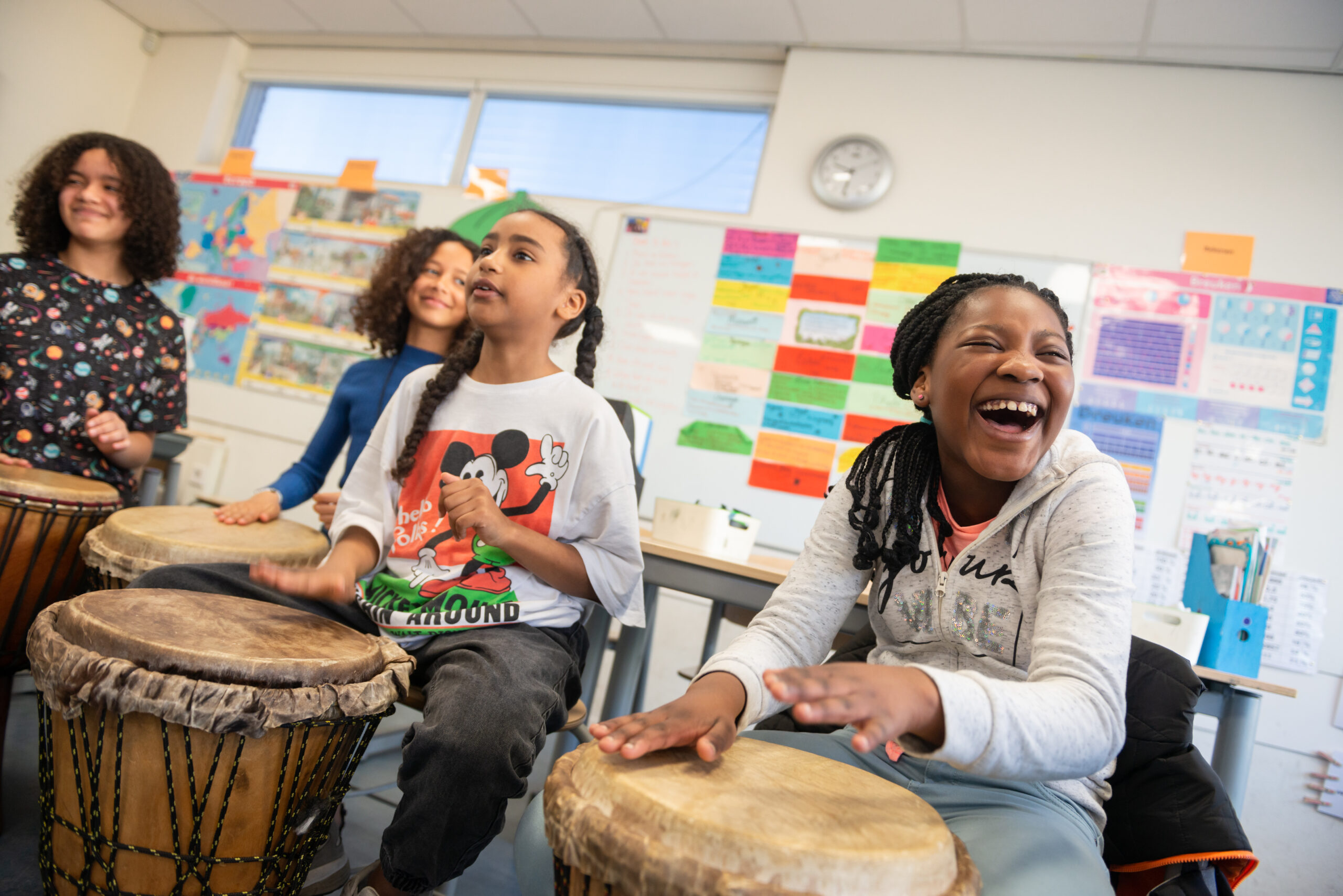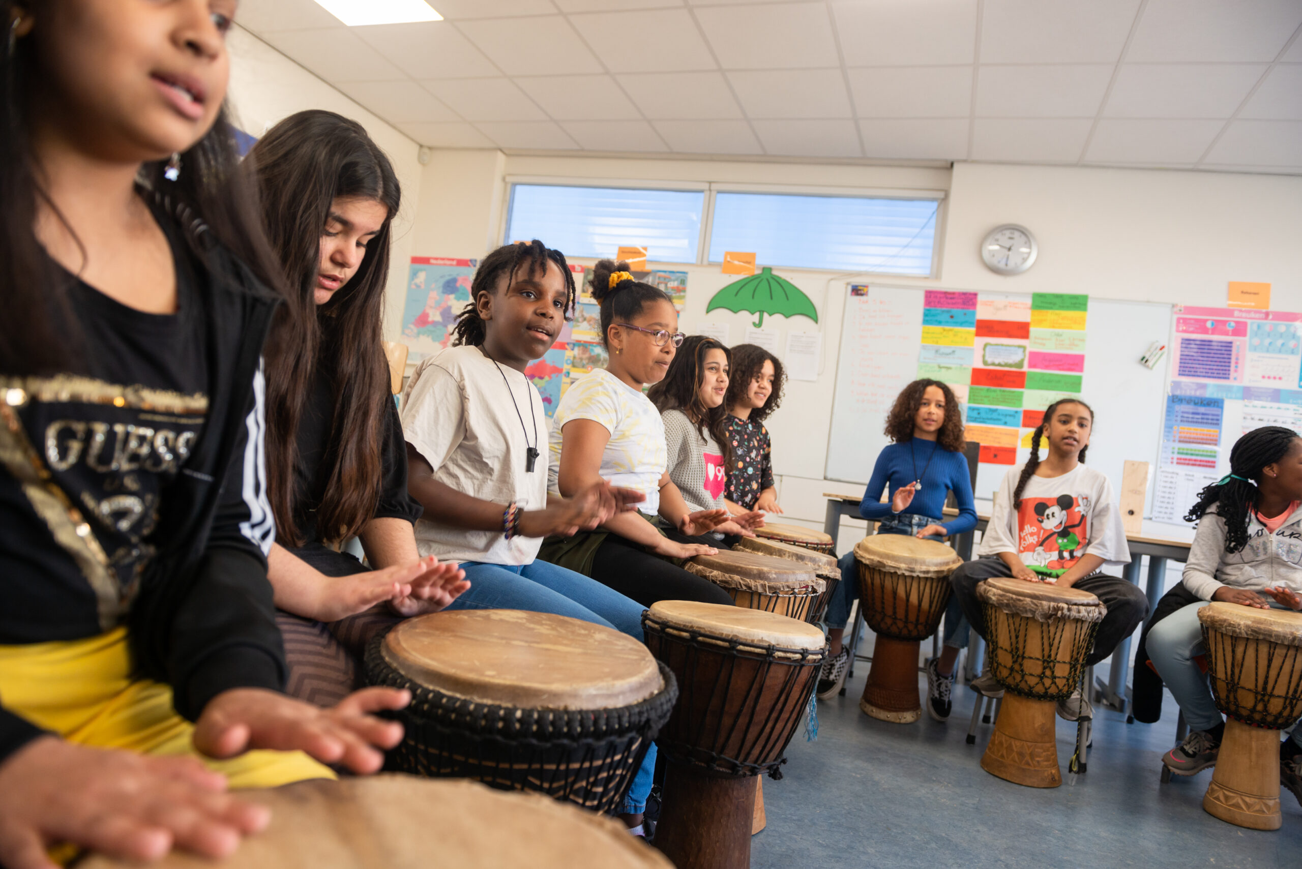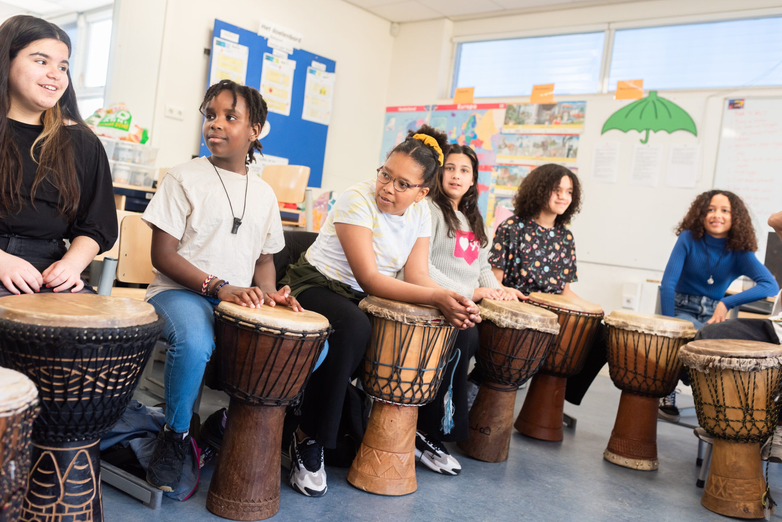 In enkele weken leren de kinderen Afrikaanse ritmes spelen. Tot slot is er een spetterend optreden. Niemand zal meer stil kunnen blijven zitten en de hele school staat op z’n kop!