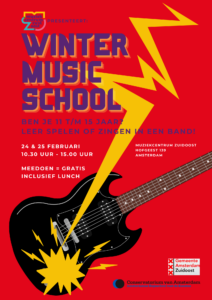Droom jij ervan om in een echte band te spelen? Is je leeftijd tussen 11 t/m 15 jaar? Dan is de Winter Music School in de voorjaarsvakantie precies iets voor jou!